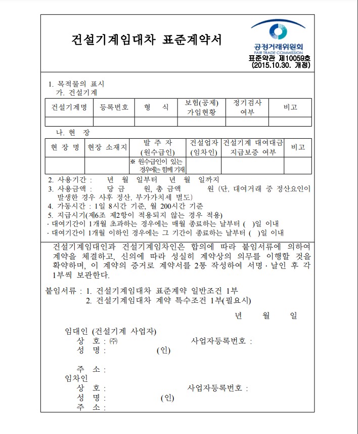 건설기계임대차 표준계약서는 국토교통부가 건설기계 임대차 거래에서 발생할 수 있는 분쟁을 예방하고, 공정한 거래를 유도하기 위해 마련한 공식 문서 양식입니다.