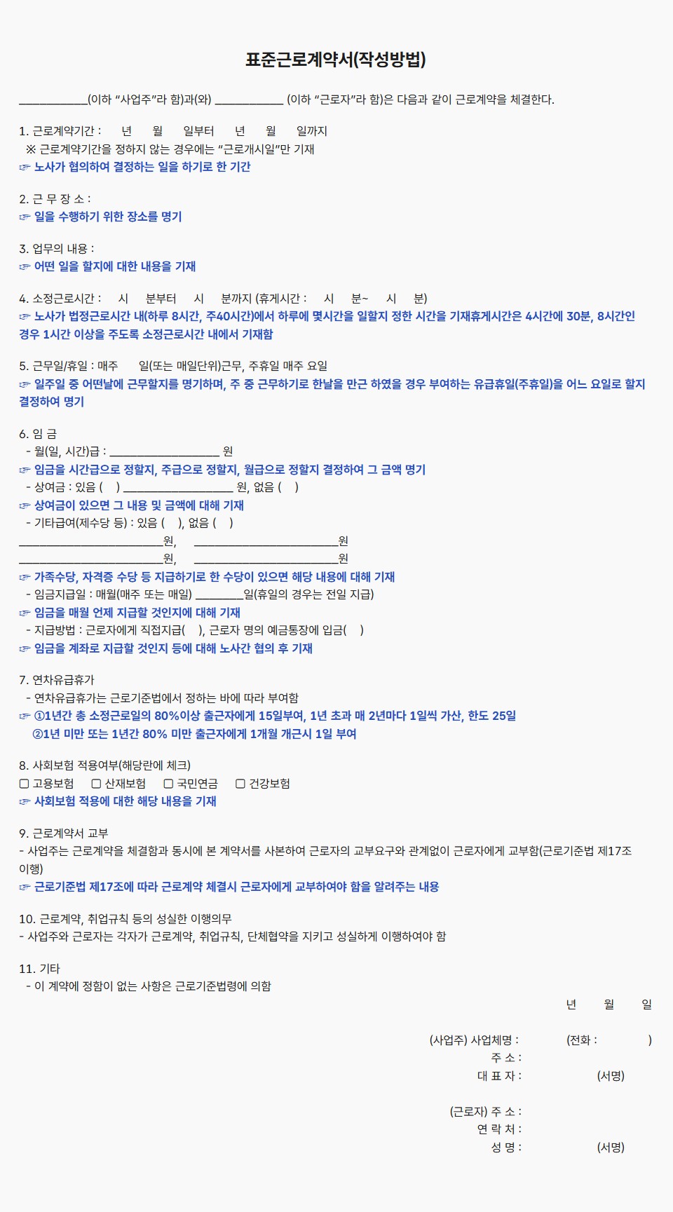 표준근로계약서 작성방법