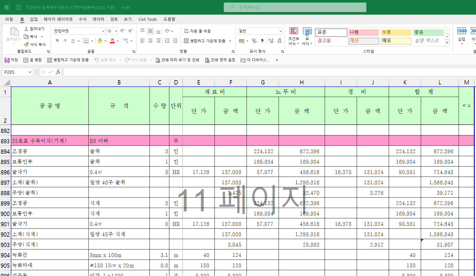 조경공사 설계대가기준에는 조경공사 일위대가, 일위대가목록, 기계단가산출근거, 기계단가산출목록, 노임단가표, 자재단가표, 건설기계목록, 건설기계손료 등이 자세하게 나와있고, 조경 공사 설계 내역서 작성 시 필요한 시공품을 다양하게 자시하고 있어 큰 도움이 됩니다.