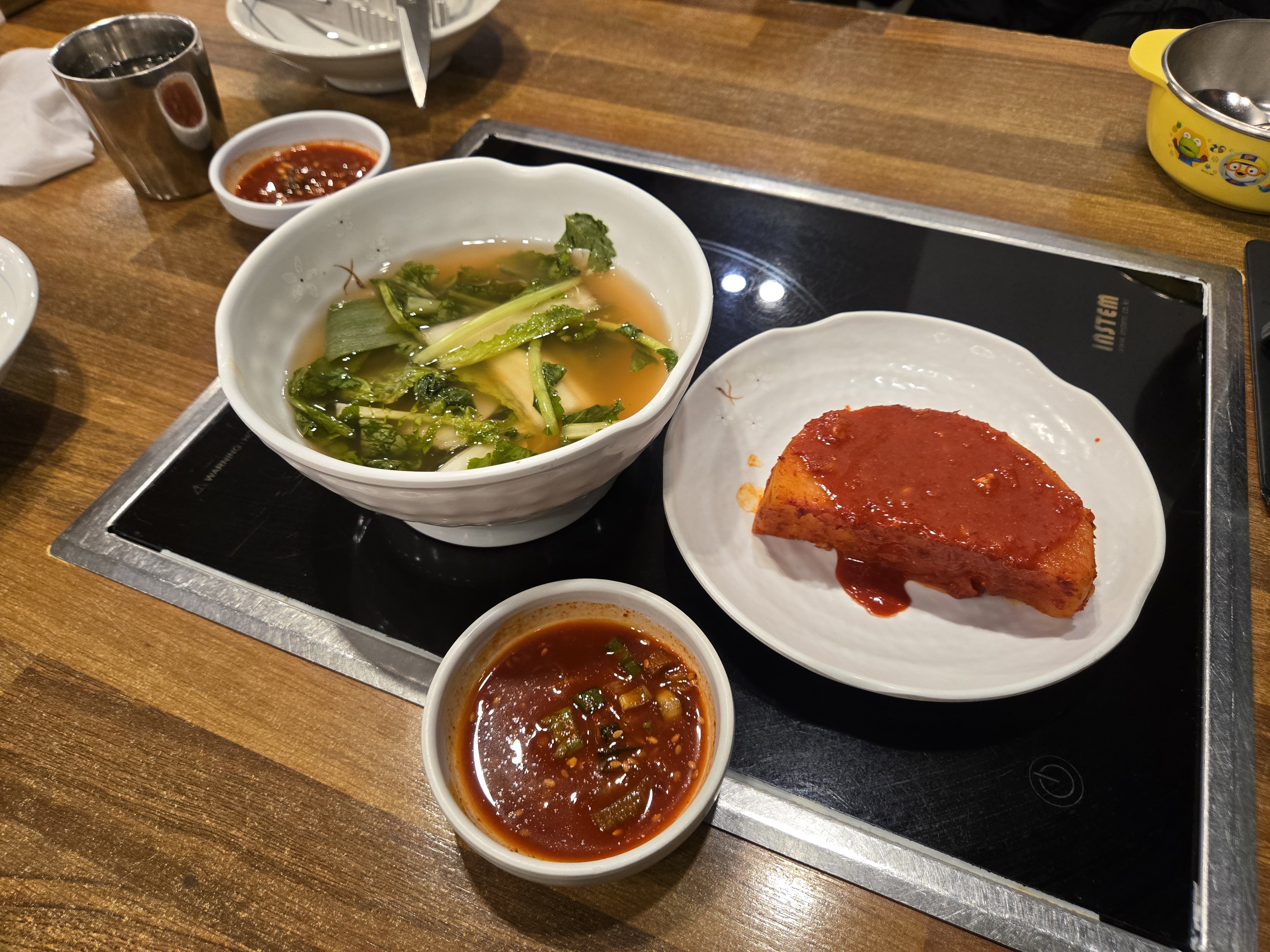 만두전골의 양은 3인분 정도 되는것 같고 성인남자 3명이서 먹으면 조금 부족하다고 생각할 수 있는 정도라 사이드로 녹두빈대떡을 주문하면 양이 딱 맞을것 같아요.