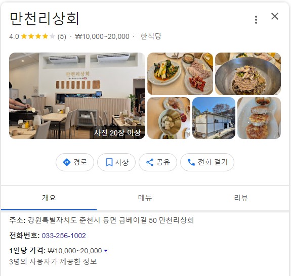 만천리상회는 강원도 춘천시 동면 금베이길 50에 위치해 있습니다. 춘천 시내에서 약간 벗어난 조용한 동네에 자리 잡고 있어 자연의 여유를 느끼며 식사할 수 있는 곳입니다. 영업시간은 매일 오전 11시부터 오후 9시까지이며, 마지막 주문은 오후 7시반까지만 받는다고 하네요.