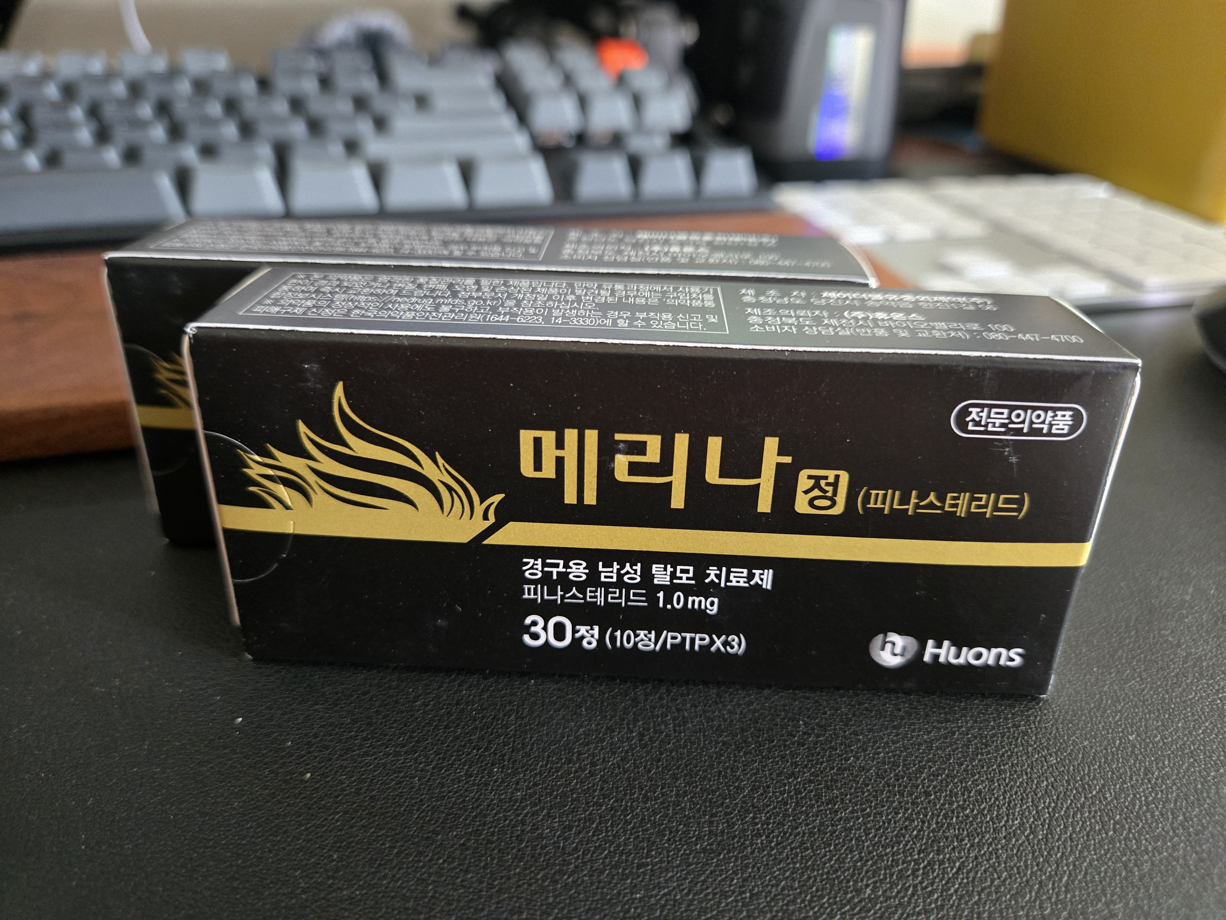 오늘 병원에가서 피나스테리드 계열 메리나정을 2개월치를 처방 받아 왔어요.