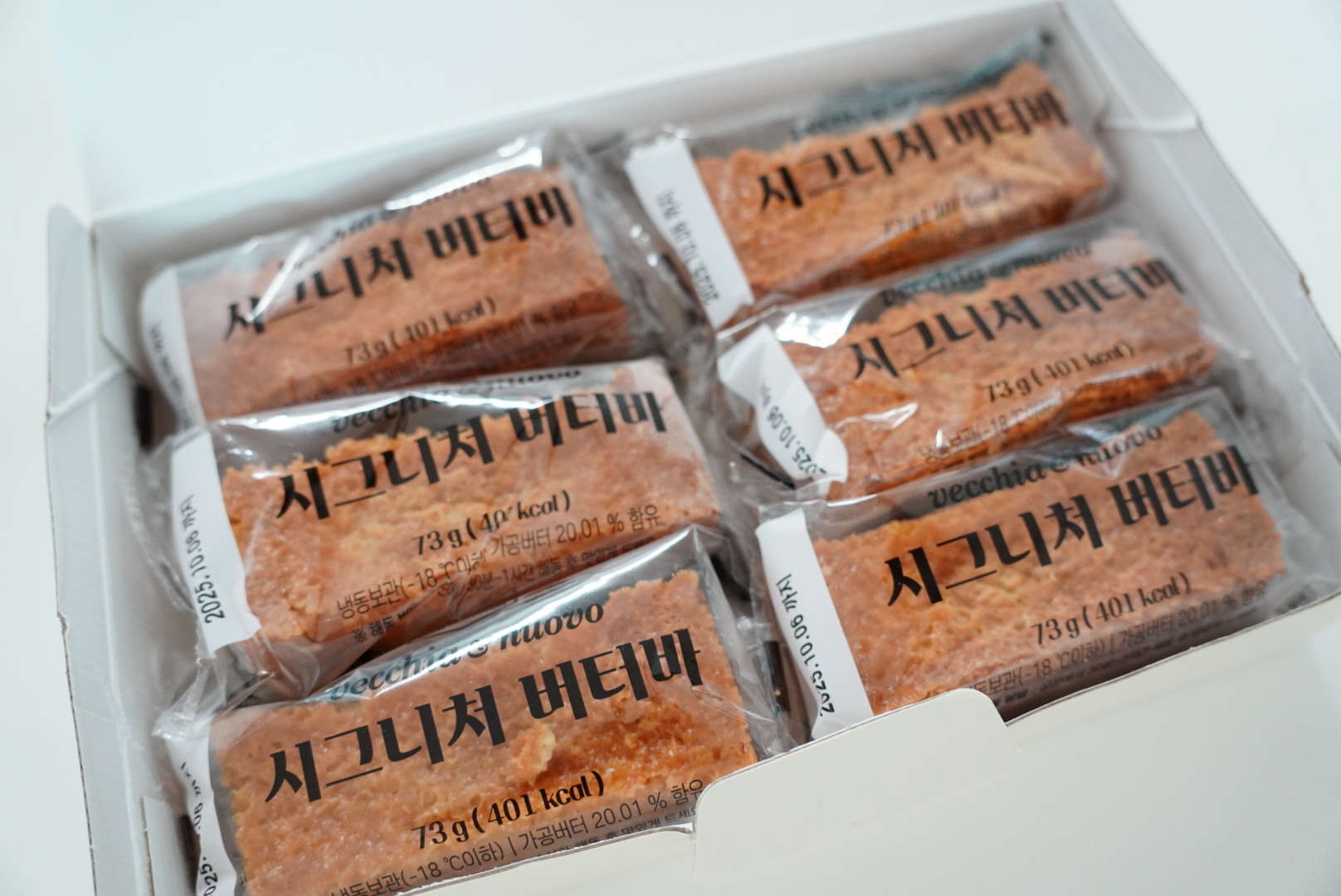 베키아에누보 시그니처 버터바는 냉동 보관 제품인데 상온에 꺼내서 30분에서 1시간 뒀다가 먹으면 되는데 경험상 이런 제품은 냉장고에서 해동을 해서 먹으면 더 꾸덕하니 맛있더라고요.