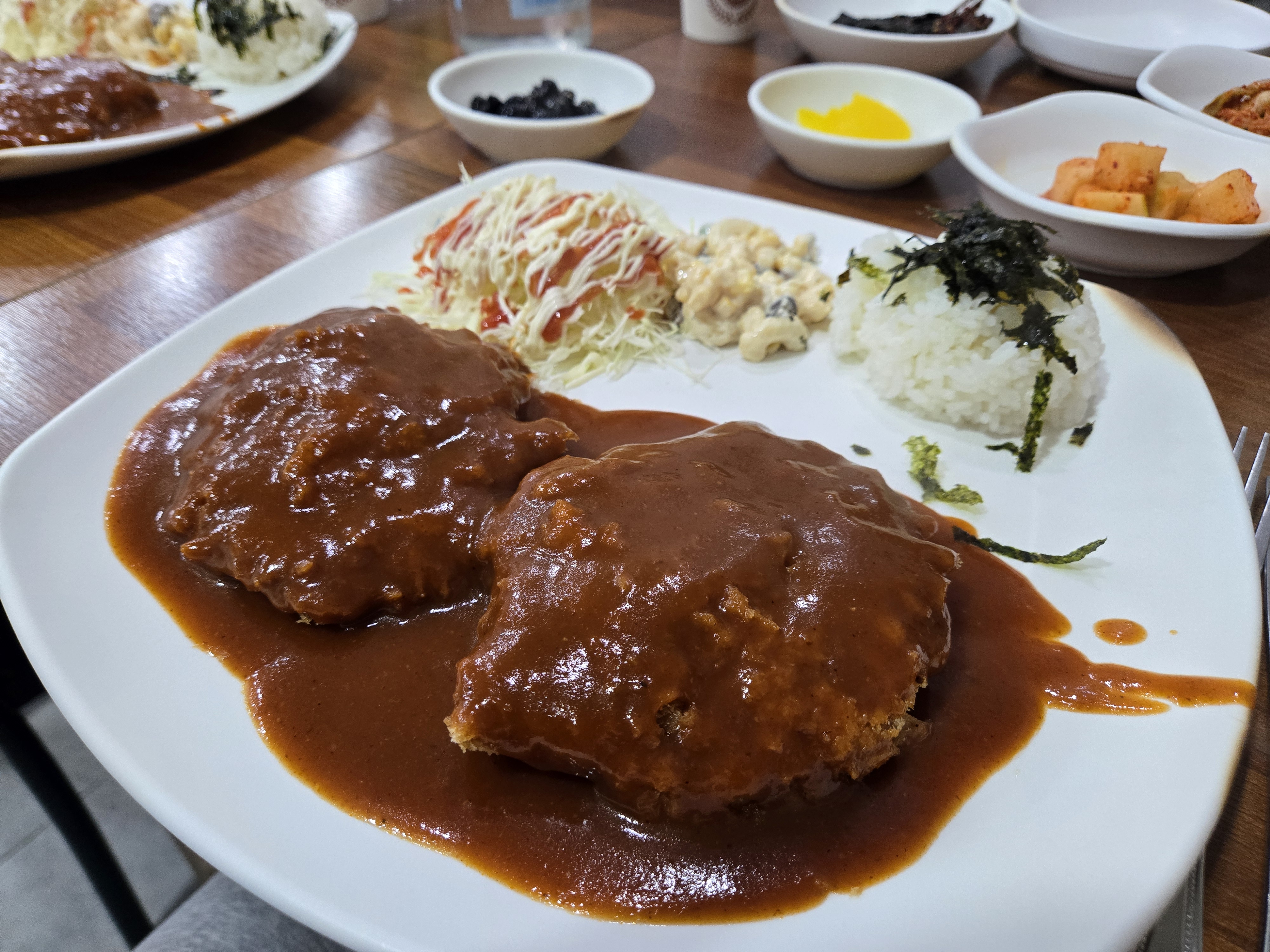 매운걸 아직 못 먹는 아이가 먹을 메뉴로 함께 주문한 왕돈까스는 두툼한 고기와 바삭한 튀김옷이 조화를 이루었습니다. 수제 등심 돈가스로 담백하고 푸짐한 양이 만족스러웠습니다. 특히, 돈까스 위에 올려진 소스는 옛날 돈까스 느낌이라 개인적으로 돈까스만 먹어도 좋겠더라고요.