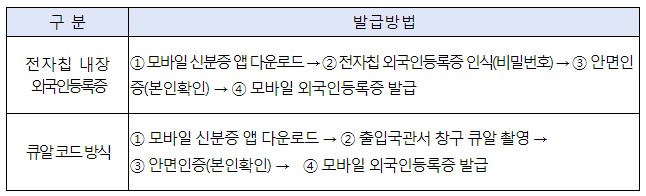 2. 모바일 외국인등록증 발급 방법